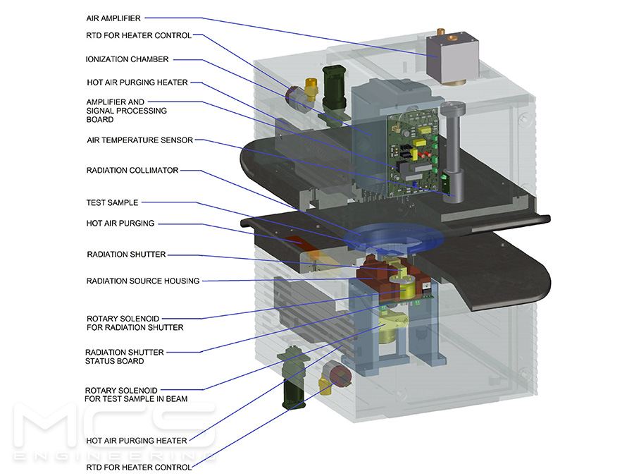 The basis weight sensor is based on the attenuation of Beta radiation emitted by a nuclear source as it passed through a material. The basis weight is determined by sensor variation in the energy radiated by the source of known intensity.